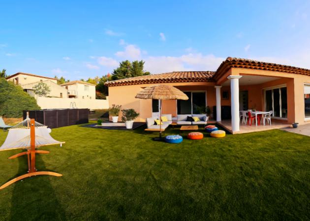 Villa lumineuse de 150 m² avec jardin clos, piscine hors-sol, garage et parking.