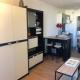 Il se compose d'une entrée avec un lit superposé (lits en 90), ensuite vous accéder au salon il y a une armoire lits qui se déplie (deux lits simple en 90) et un acapé lit en 140. Un balcon avec une belle vue sur la dune, une cuisine ouverte avec machine à laver et une salle de bain avec wc et baignoire.