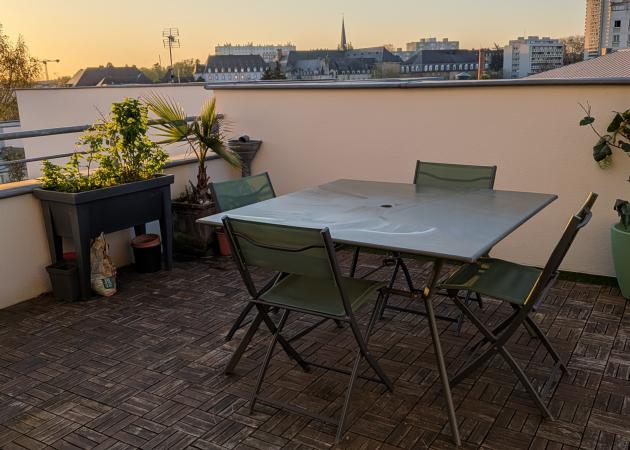 Je vous propose une chambre avec salle de bain dans un appartement agréable avec terrasse au centre Rennes.