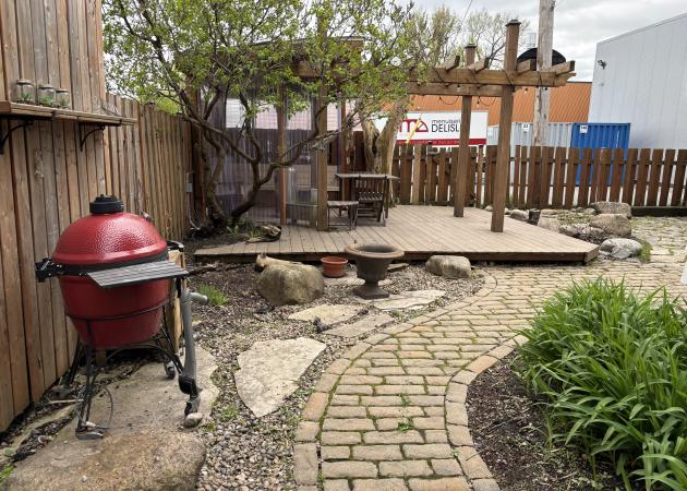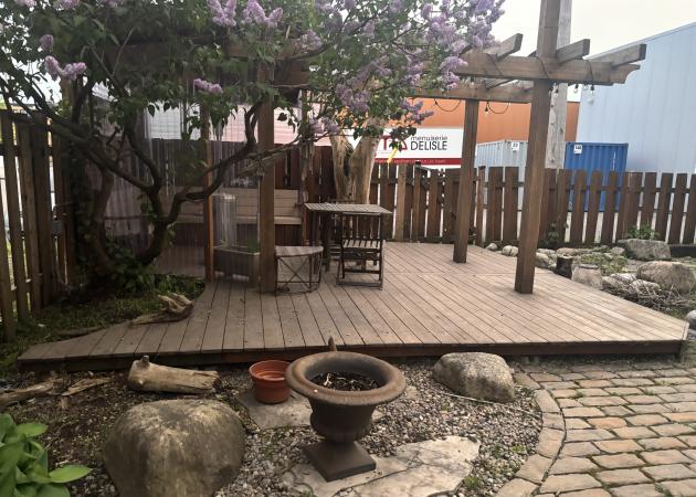 accès à la cuisine, cour arrière chaleureuse, terrasse chauffée, pergola, balcon