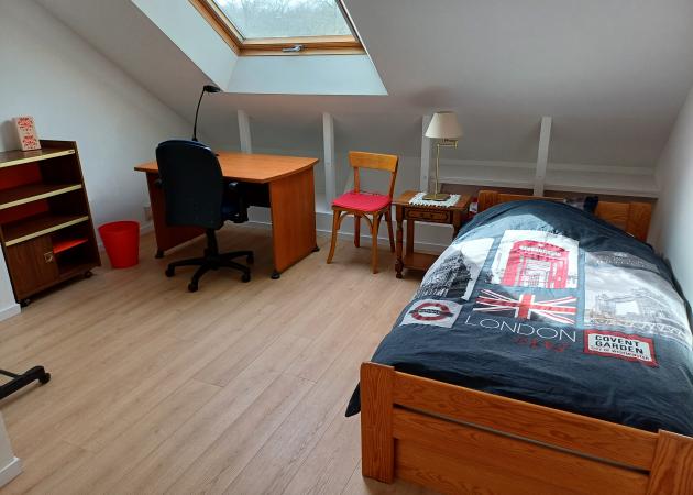 Chambre meublée. Lit, bureau chaise de bureau. Rangement