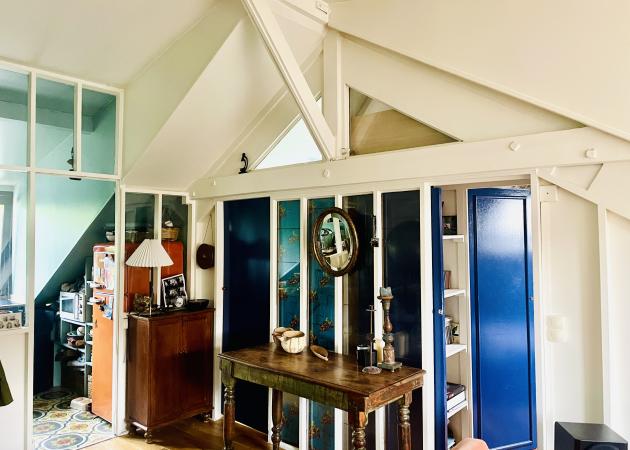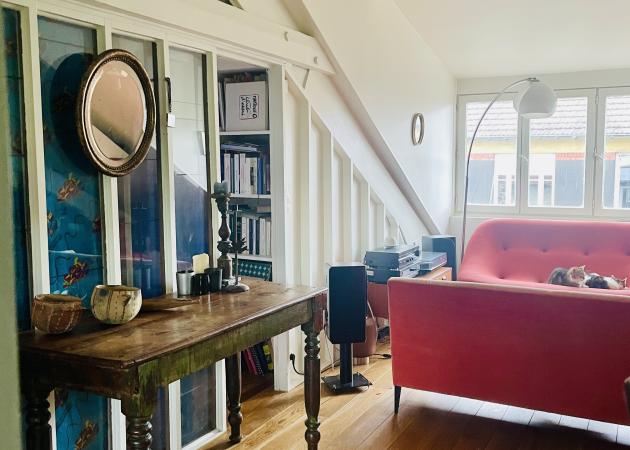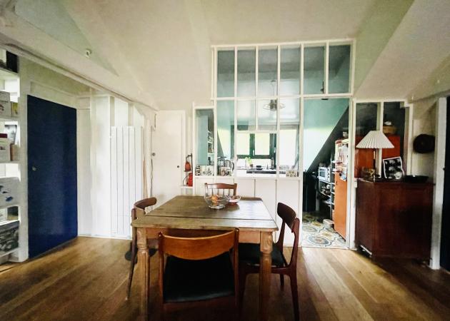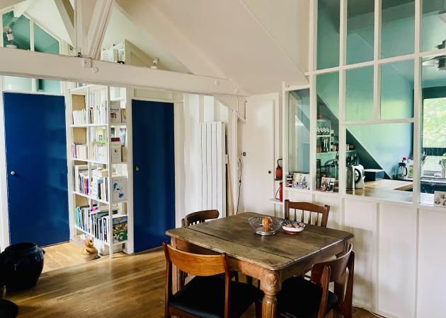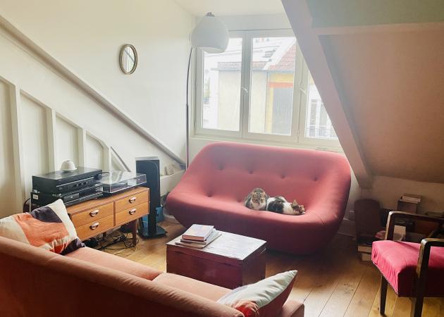 C’est un magnifique appartement de 84 m2, extrêmement calme, avec un ciel au couchant spectaculaire donnant sur le Sacré Coeur. Il y a deux jardins partagés dans notre petite co-pro constituée de deux maisons de des années 1910 avec des tables pour y déjeuner ou dîner. Situé aux Lilas, dans un quartier résidentiel très vert, il est à 7 minutes à pied de tous les commerces.