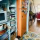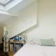 La chambre est dotée d’un lit double, avec une grande étagère et un bureau.