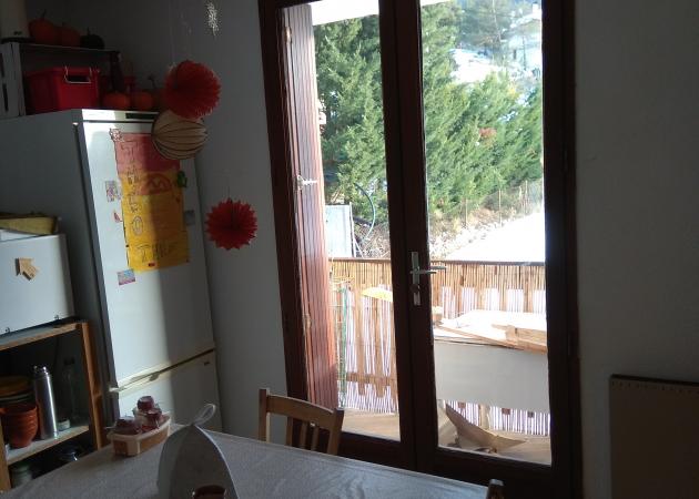 La cuisine, avec balcon, est à disposition seulement pour usage minimaliste : bouilloire, micro onde.