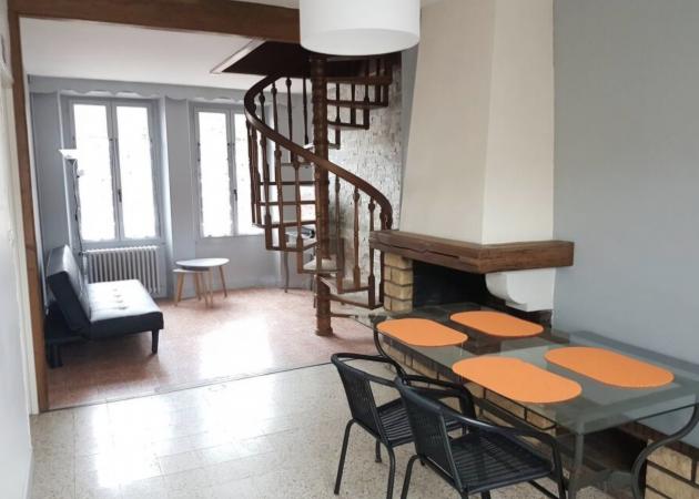 Stationnements et espace vert juste devant, rivière à 50m, locations de VTT, kayak, paddle de l'autre côté de la rive.