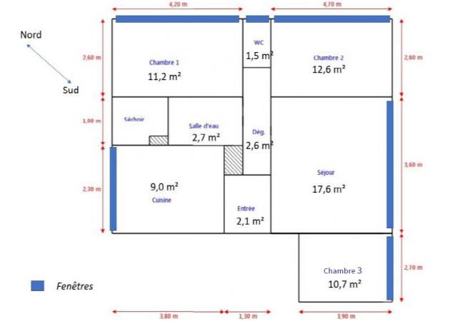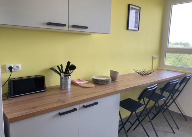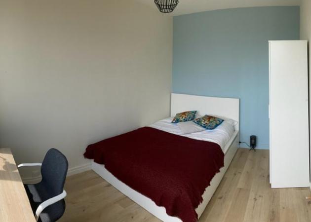 Chaque chambre est équipée d’un lit double de 140x190, d’une armoire de rangement, d’un bureau et d’une chaise. L’appartement dispose d’un wifi par fibre optique.