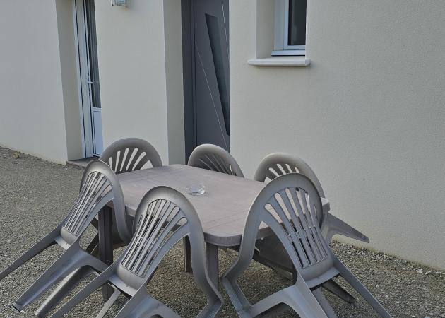 Places de parking devant la maison, et sur le trottoir également, terrasse avec salon de jardin et coin pelouse, transats sur demande également.