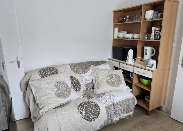 Chaque chambres comprend 1 BZ 140x190 avec un vrai matelas confortable et le salon kitchenette également.