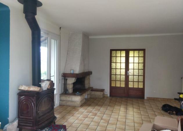Elle compte 3 chambres, une salle de bain, des toilettes, une grande cuisine et un grand salon avec un poêle. La maison n’est pas meublée. Elle se trouve sur un grand terrain d’environ 3500 m2, avec différentes plantations, un potager avec une serre, etc. Au sous-sol, il y a également une très grande pièce/garage qui peut servir d’atelier pour bricoler ou de salle pour recevoir les copains !