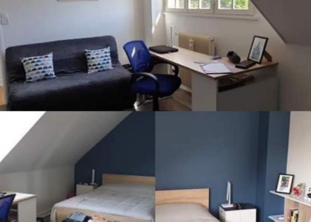 , ces grandes chambres étudiantes de >= 15m2 lumineuses dans une résidence calme vous attendent ! Vous avez à proximité immédiate 2 lignes de bus , des commerces,trottinettes, scooters urbains et surtout la Fac à 1km à vol d oiseau et 2 par la piste cyclable .Vous partagez la cuisine entièrement équipée et un séjour salon convivial et chaleureux . Le jardin est mitoyen d une forêt pour jogger et vous disposez d' un grand garage avec des rangements individuels avec un frigidairecongélateurdédié ! Les chambres ont toutes un bureau une grande penderie ou armoire des chevets ,un fauteuil et une literie en 140 neuve avec linge de lit fourni.