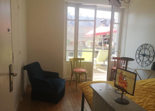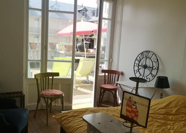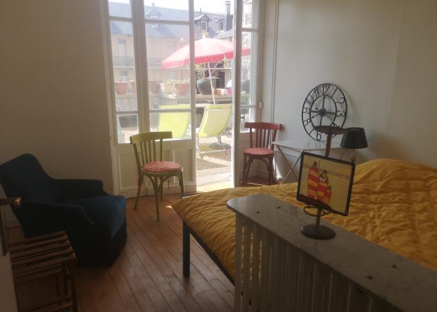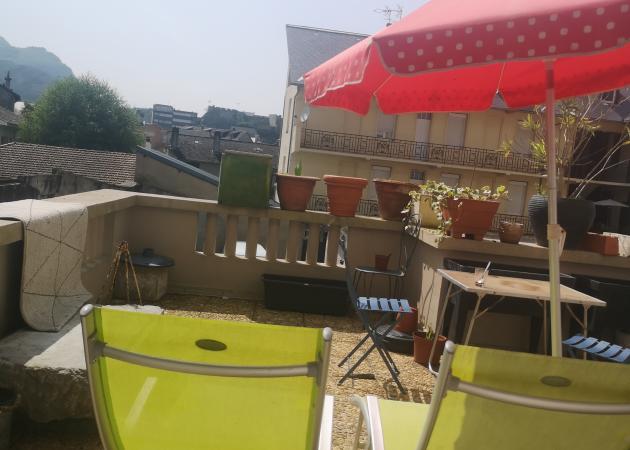 La chambre mesure 12m2 mais a accès à une terrasse de 30m2 avec vu sur les montagnes.
