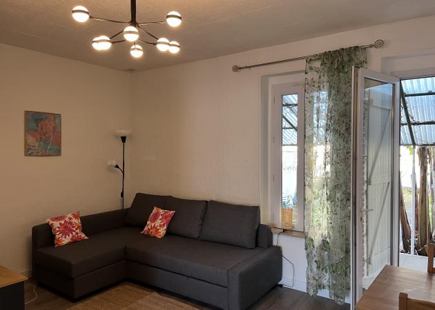 Il dispose d’une seule pièce à vivre, aménagée avec soin pour accueillir jusqu’à quatre personnes : un lit double confortable et un canapé convertible.