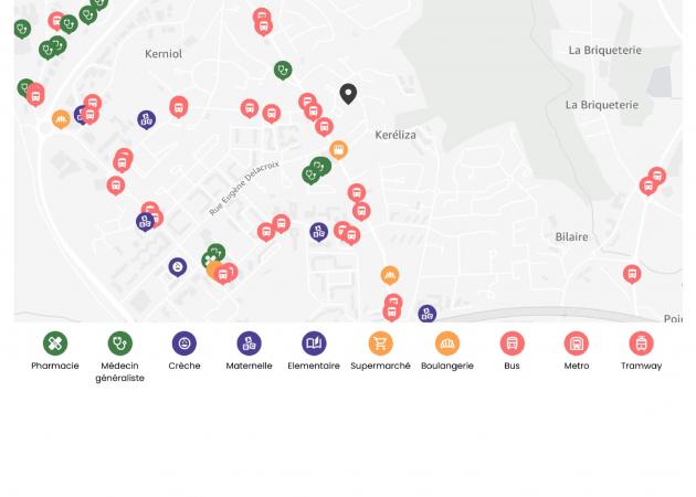 arrêt de bus vers le centre ville au coin de la rue avec passage toutes les 10 mins
