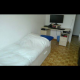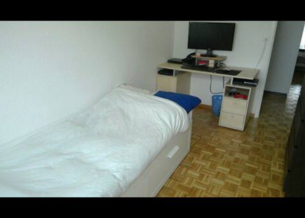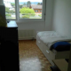 La chambre est entièrement meublée : lit 1 place qui devient facilement 2 places, bureau, commode, placard, télévision.