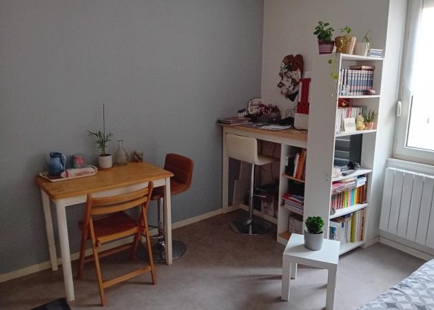Pièce Meublée (table, chaises, rayonnage, armoire, lit, bureau).