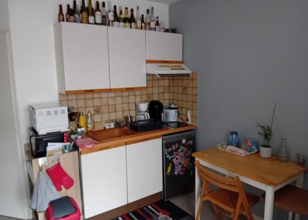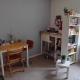 Cuisine équipée : plaque électrique, réfrigérateur, micro-onde, hotte, et tout ustensiles nécessaires.