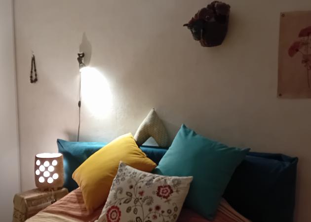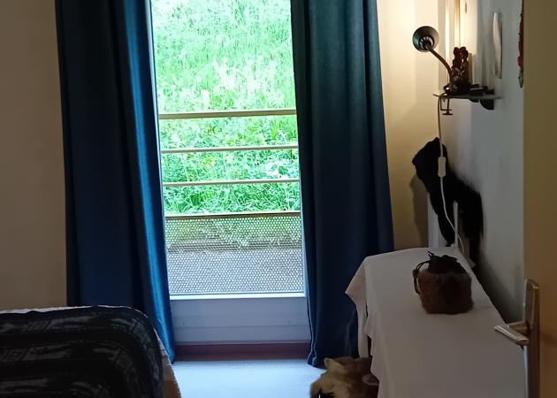 La chambre, réservé aux non-fumeurs, vous offre aussi l'accès à un balcon et à un petit jardin où vous pouvez manger, vous reposer, au soleil ou sous les parasols. Les draps sont fournis pour un lit de 140 x 190cms. Les serviettes de toilette sont fournies.
