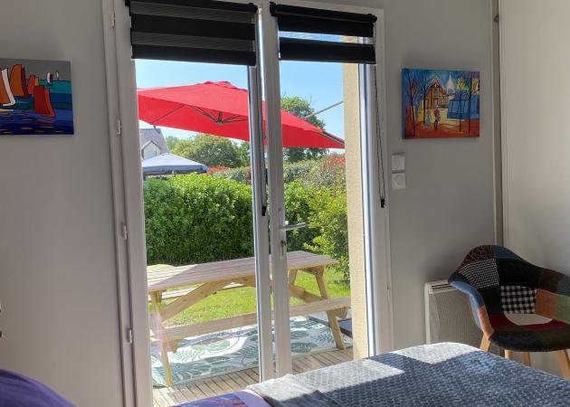 Chambre tout confort avec accès sur le jardin. TV, WC privé, salle d’eau (douche à l’italienne)