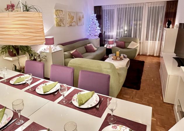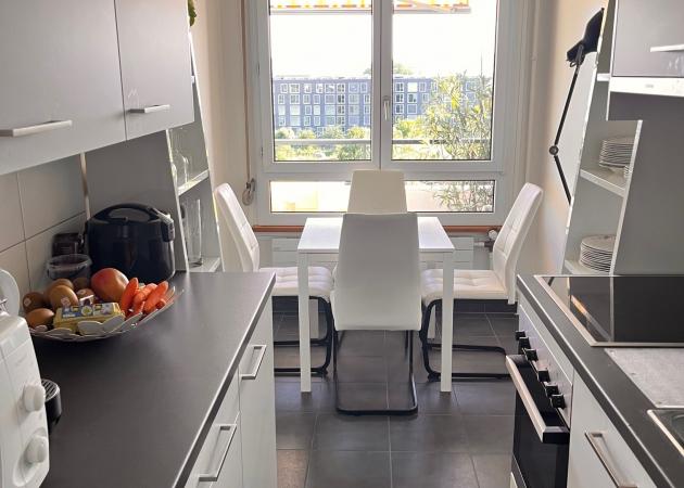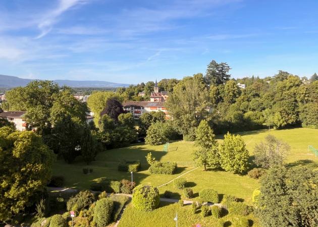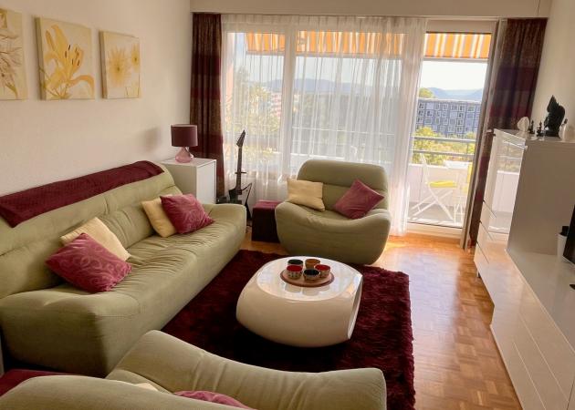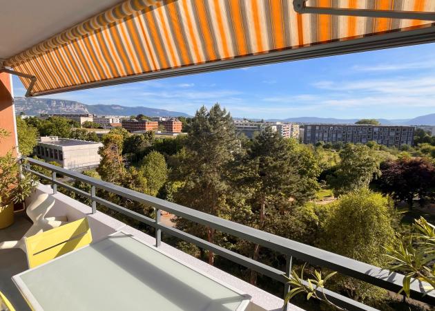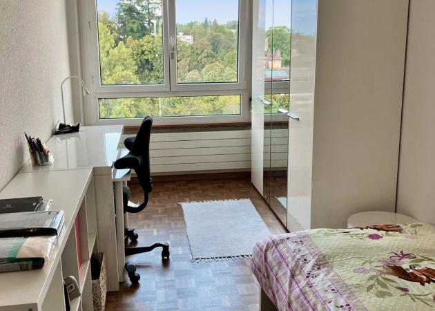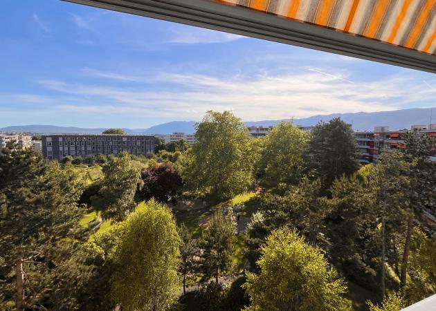 Cherche une colocataire femme ordonnée pour partager un beau 5 pièces - Traversant au dernier étage (7ème) avec superbe vue à 180° du Salève au Jura - Parcs arborisés au pied de l’immeuble et derrière les 3 chambres.