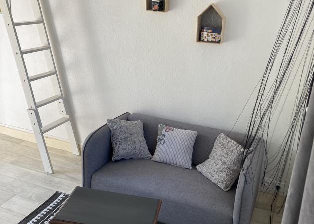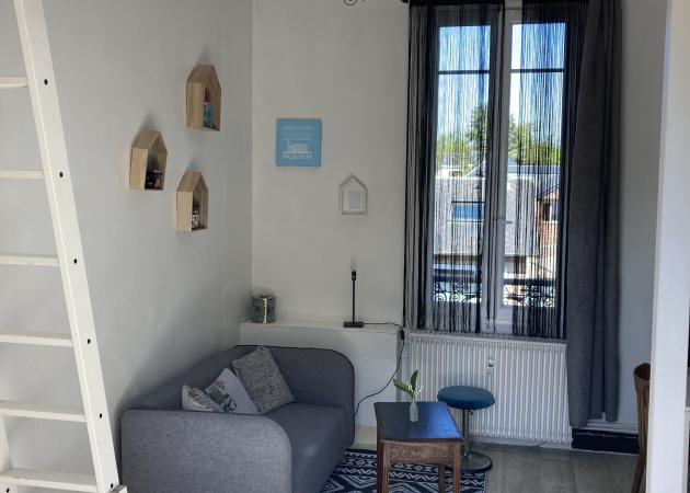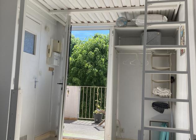 L’appartement est un studio avec terrasse, entièrement équipé pouvant accueillir 2 voyageurs. Il est composé d’une entrée sur pièce à vivre décorée avec goût qui comprend le coin salon-séjour, kitchenette fermée tout équipée et un lit double en mezzanine, plus une salle de douches. Le logement est entièrement meublé, très lumineux. Le linge de maison et les draps sont fournis dans la location (sauf au mois).