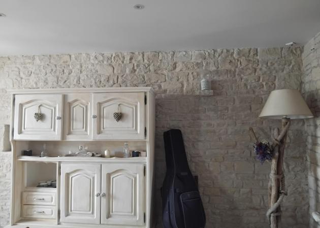 Chambre à louer à la nuit où semaine dans une petite maison charentaise en pierres avec petit jardin clos à 100 mètres du centre bourg avec commerces. A 25 minutes de La Rochelle en voiture avec accès direct 4 voies. Vous aurez accès à une cuisine équipée, salon avec télé et salles d'eau avec douche spacieuse.