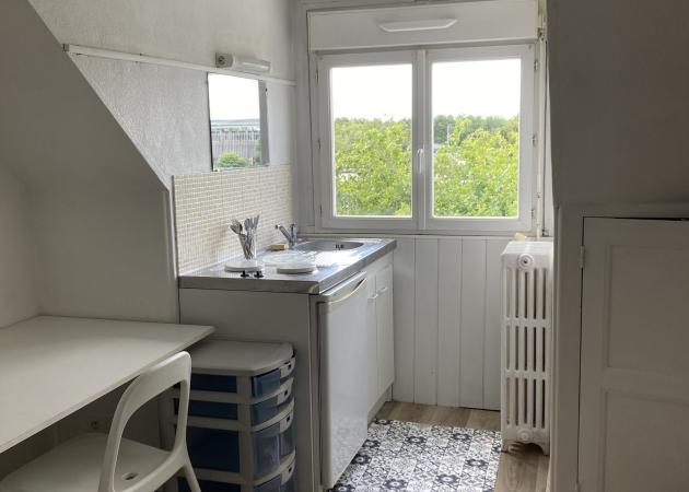 Hyper centre ville de Lorient au 4 eme étage (sans ascenseur.) Chambre étudiant pour 1 personne avec coin cuisine. Non fumeur(se).