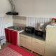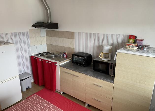 Le studio se compose d’un couloir desservant une cuisine avec coin repas tout équipée, une chambre avec deux lits d’une personne et un dressing et TV