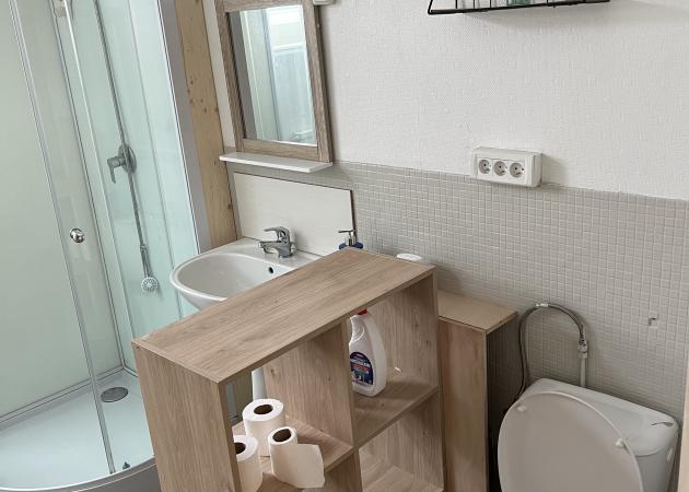 Vous aurez accès à une salle de douche privative avec WC et machine à laver