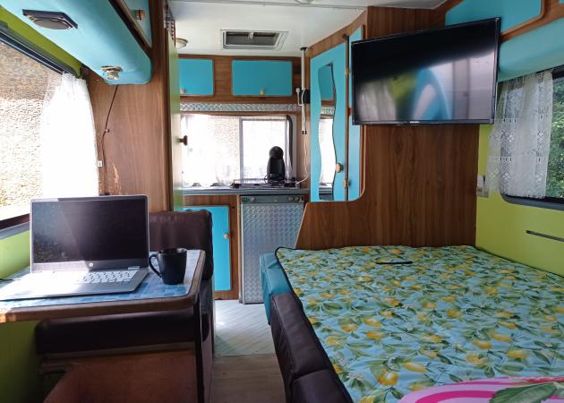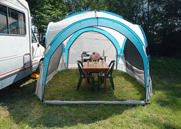 Profitez du calme de la campagne et de la beauté d’un environnement naturel préservé. Le camping-car est installé à l’ombre des arbres, offrant intimité et tranquillité, tout en bénéficiant des commodités du gîte. Une Tonnelle de huit places vous servira de coin cuisine et salle à manger, le camping-car est équipé comme un studio avec tout les équipements + (jardin, barbecue, plancha, transat, hamac) plusieurs lacs à moins de 20 minutes et l'Océan à 1h15
