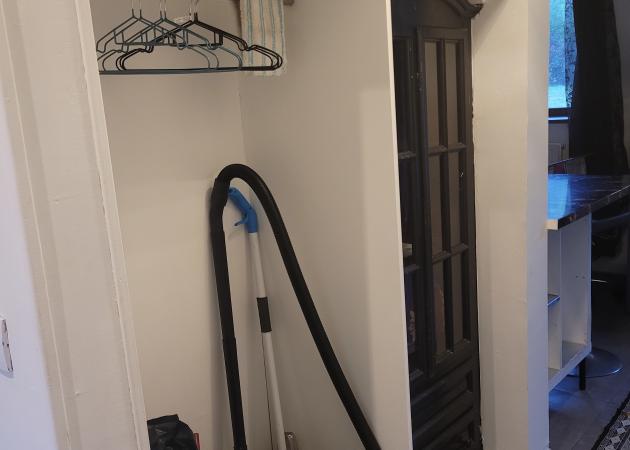 Autres équipements : fer à repasser + table, séchoir à linge, kit seau balai serpillière. Une salle de bain avec douche et une machine à laver. 2 WC séparés (un dans la salle de bain et l'autre au RDC.