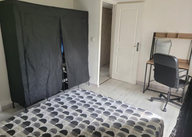 La maison est composée de 3 chambres privatives toutes équipées : 1 placard penderie, 1 lit 2 places complet (oreillers, couettes, housses de couette, draps) matelas de 140x200cm, 1 bureau avec chaise, 1 poubelle, 1 lampe de bureau.
