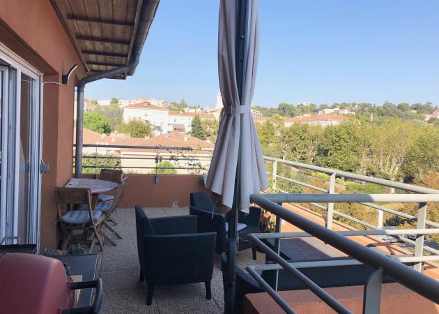 Grande terrasse, salle de bain séparée, grand séjour, grand placard, wifi gratuit....