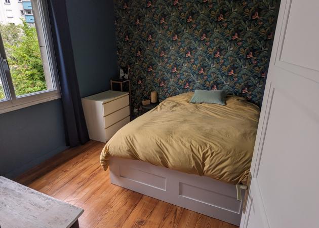 Bonjour ! Nous vivons dans une petite maison de ville avec jardin dans une rue calme à 5-10mn à pied de la station de tram St Exupéry. La chambre disponible est à l'étage de la maison (lit double, commode, bureau). Salle de douche, WC, cuisine et séjour en commun. Nous sommes une famille avec une petite fille de 3 ans et mon conjoint est absent du lundi au vendredi. Seules les femmes seront acceptées.