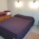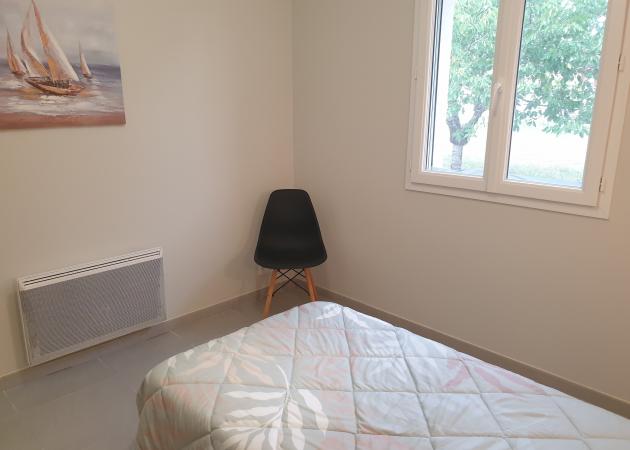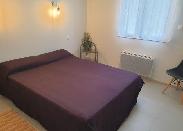 Une chambre avec lit 2 personnes (140X190) + une chambre avec lit 1 personne (90X190). Une cuisine ouverte avec équipement suffisant pour préparer des repas simples, une salle de bain avec douche, toilettes séparées, séjour lumineux sobrement meublé avec vue sur les arbres fruitiers et la campagne environnante. Ce logement vous offrira un séjour de détente dans un village calme, avec un voisinage tranquille, au milieu d'un très grand jardin clôturé et garni d'arbres fruitiers.