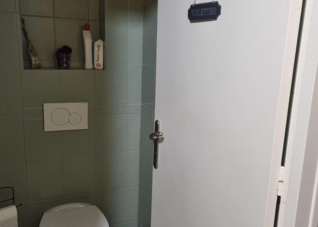 La chambre possède un lit 140 x 190 cm avec placard de rangement, bureau avec clé d’accès
