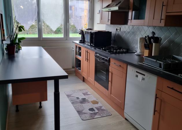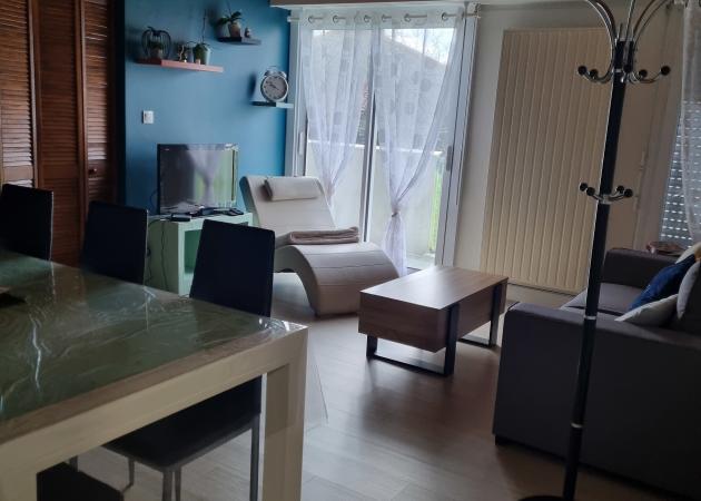 Cuisine aménagée et équipée - Salon équipée d’une TV – Salle de bain (baignoire) / WC séparé