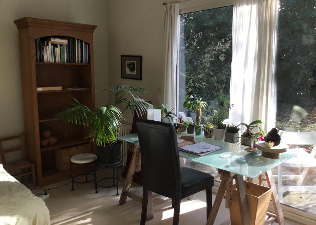 Chambre de 14 m 2 meublée dans une maison de 200 m 2 avec grand jardin exposé sud.