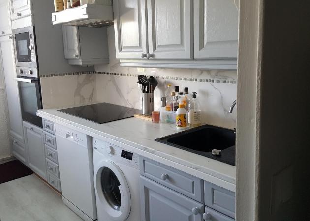 L'appartement est entièrement équipé : cuisine avec réfrigérateurs, four, 2 micro-ondes, lave-vaisselle, lave-linge, sèche-linge, tables, chaises.