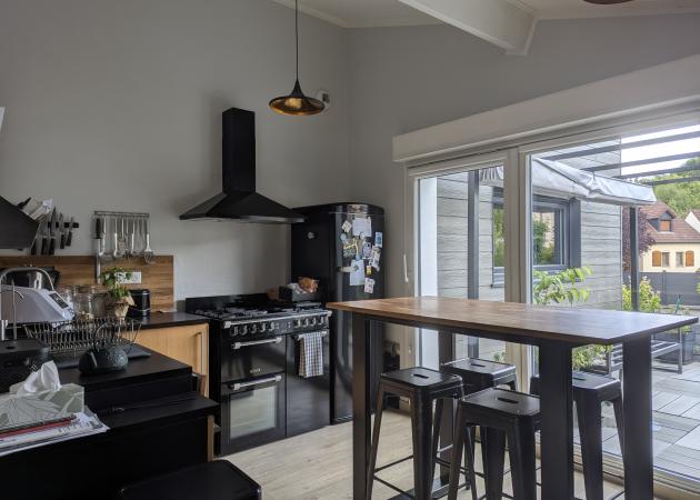 Espaces communs accessibles : cuisine, salon, salle à manger, jardin et terrasse-Garage vélo/trottinette