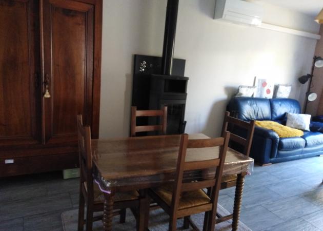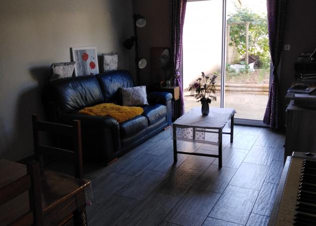 - Salon/salle à manger avec grande baie-vitrée donnant sur la terrasse et le jardin