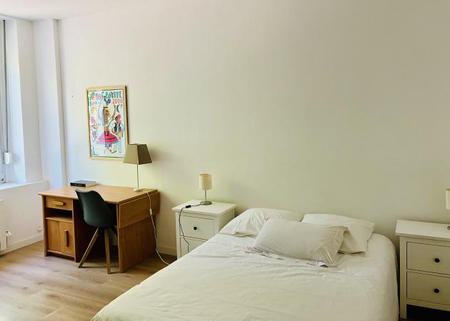 Idéal pour étudiant(e), stagiaire ou personne en séjour professionnel. À louer : grande chambre meublée de 20m² (17m² sans la salle d'eau), très lumineuse, située dans un bel appartement rénové au cœur du centre-ville de Mulhouse.