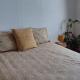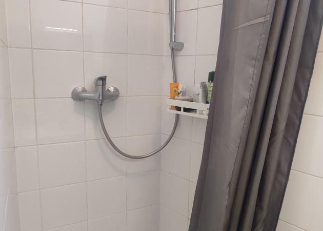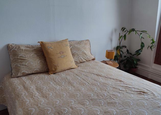 La chambre est meublée avec un grand lit, rangements et un bureau. L'appartement de 50m2 est entièrement équipé (salon, cuisine, 2 chambres et sdb douche). Il est très lumineux et cosy. 6ème étage sans ascenseur (parfait pour les fessiers !)