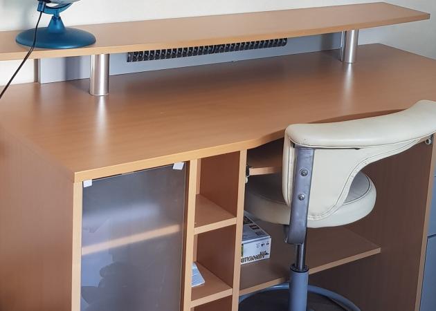 Chambre lumineuse de 12m2 avec porte-fenêtre donnant sur balcon. Lit 90x190, placard penderie, bureau, meuble de rangement.