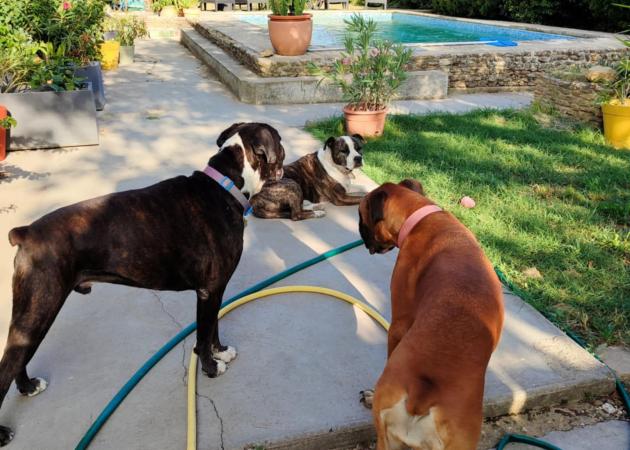 Prendre en compte la présence de chiens tres sociables dans l'environnement de la maison.