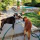 Chiens tres sociables et tres gentils appartenant au proprietaire ..En liberté sur le terrain!