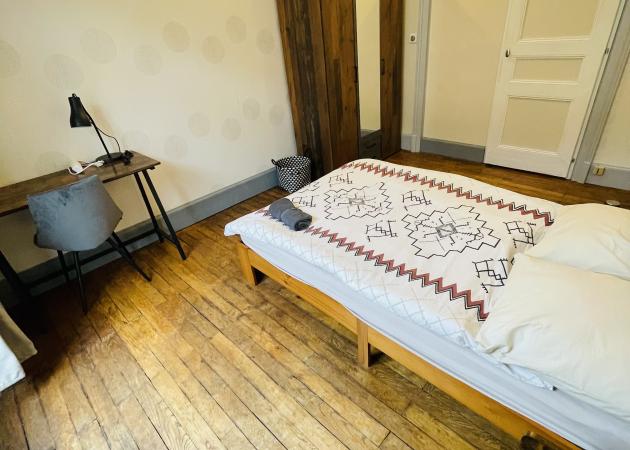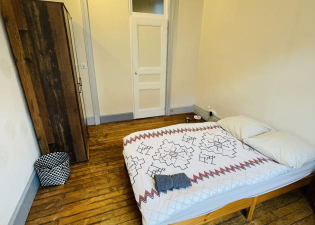 Plus en amont, la troisième chambre (n°3) de 12,40m2, parfaitement isolée phonétiquement composée d’un lit 120x200, une armoire-penderie et un bureau.