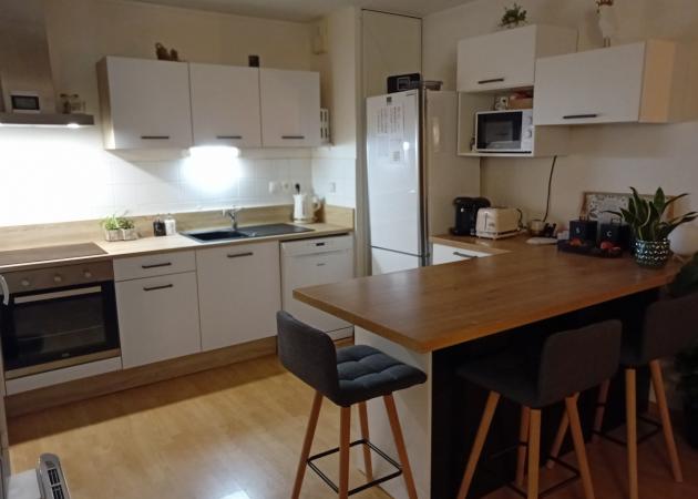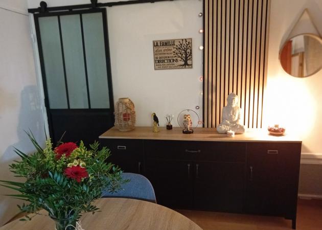 L'appartement est situé dans une copropriété au rez-de-chaussée. Le stationnement est facile devant l'immeuble.