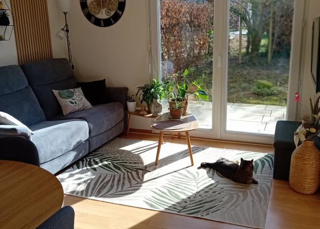 Location d’une chambre chez l’habitant lumineuse et meublée dans un duplex paisible, à seulement 8 minutes à pied du tramway. Située à l'étage, cette chambre de 10 m² offre une vue dégagée sur la campagne.