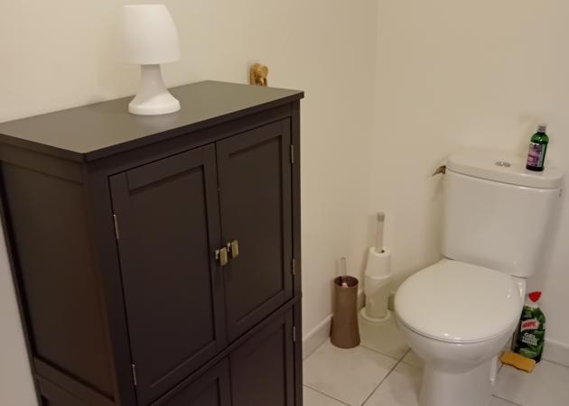 Les toilettes, la salle de bain, le réfrigérateur, le microondes et la plaque de cuisson sont à partager avec l’occupant de la seconde chambre.