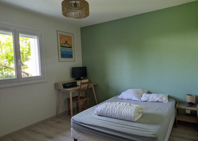 Chambre entièrement refaite à l'été 2025 avec bureau disponible pour un hébergement à la semaine au cours du mois de septembre 2025 dans une maison occupée par une famille. La maison est située dans un quartier résidentiel avec accès rapide aux transports en commun vers les facultés (lignes 2 et 7). Une salle de bains est mise à disposition à côté de la chambre.